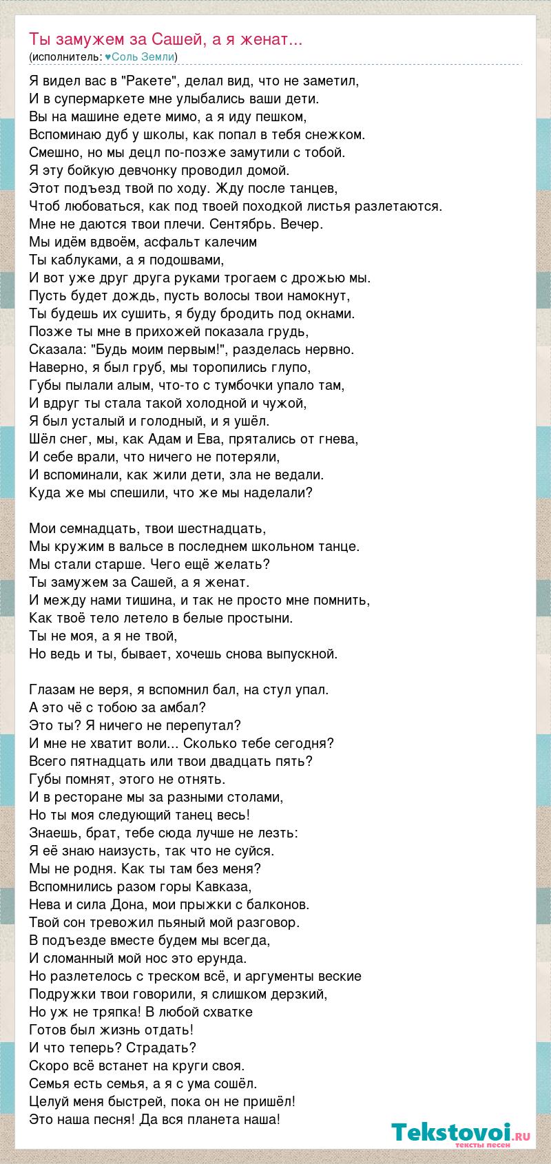 А как ты думаешь, о чем песня "Ты замужем за Сашей, а я женат..." ?