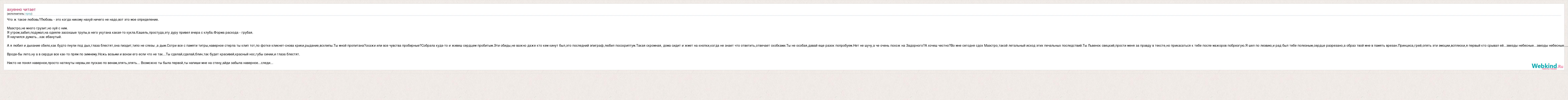 Что ж такое любовь?Любовь - это когда никому нахуй ничего не надо,вот это мое определение. Маэстро,не много грузит,но хуй с ним. Я утром,забил,подумал,на одеяле засохшые трупы,в него укутана какая-то кукла.Кашель,простуда,эту дуру привел вчера с клуба.Форма расхода - грубая. Я научился думать...как ебанутый. А я любил и дыхание сбило,как будто пнули под дых,глаза блестят,она пиздит,типо не слезы ,а дым.Сотри все с памяти титры,наверное стерла ты клип тот,по фотке кликнет-снова крики,рыдание,всхлипы.Ты мной пропитана?скажи или все чувства пробирные?Собрала куда-то и живеш сердцем пробитым.Эти обиды,не важно даже кто кем кинут был,это последний эпиграф,любил посскриптум.Такая скромная, дома сидит и жмет на кнопки,когда не знает что ответить,отвечает скобками.Ты не особая,давай еще разок попробуем.Нет не шучу,а че очень похож на Задорного?А хочеш честно?Во мне сегодня сдох Маэстро,такой летальный исход этих печальных последствий.Ты Львенок свецкий,прости меня за правду в тексте,но прикасаться к тебе после мажоров побрезгую.Я шел по лезвию,и рад был тебе полезным,сердце разрезано,а образ твой мне в память врезан.Принцеса,грей,опять эти эмоции,всплески,я первый кто срывал ей...звезды небесные...звезды небесные.... Вроде-бы лето,ну а в сердце все как-то прям по зимнему.Ножь возьми и вонзи его если что не так...Ты сделай,сделай,блин,так будет красивей,красный нос,губы синии,и глаза блестят. Никто не понял наверное,просто натянуты нервы,ее пускаю по венам,опять,опять... Возможно ты была первой,ты напиши мне на стену,айди забыла наверное...следи...
