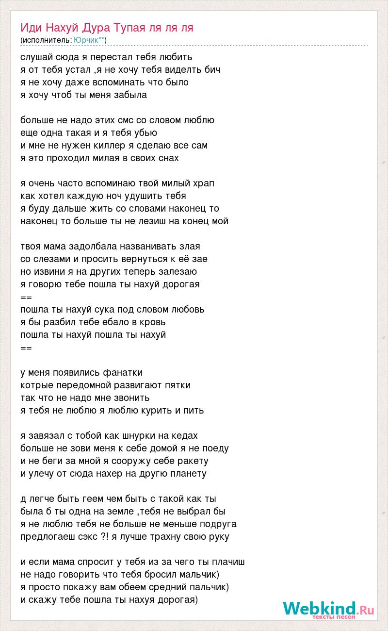 А как ты думаешь, о чем песня "Иди Нахуй Дура Тупая ля ля ля" ?