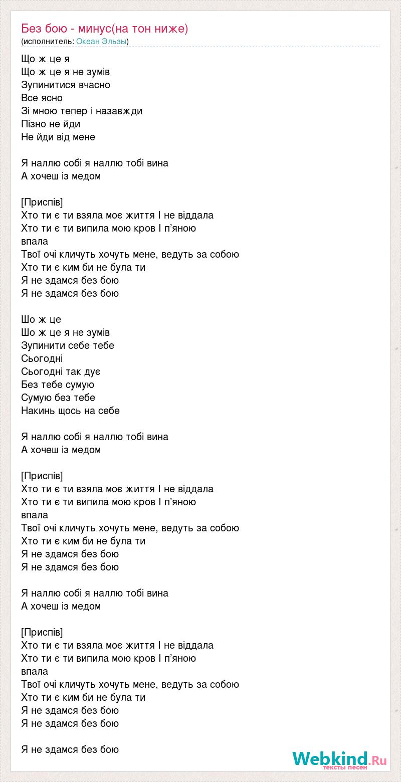 А как ты думаешь, о чем песня "Без бою - минус(на тон ниже)" ?