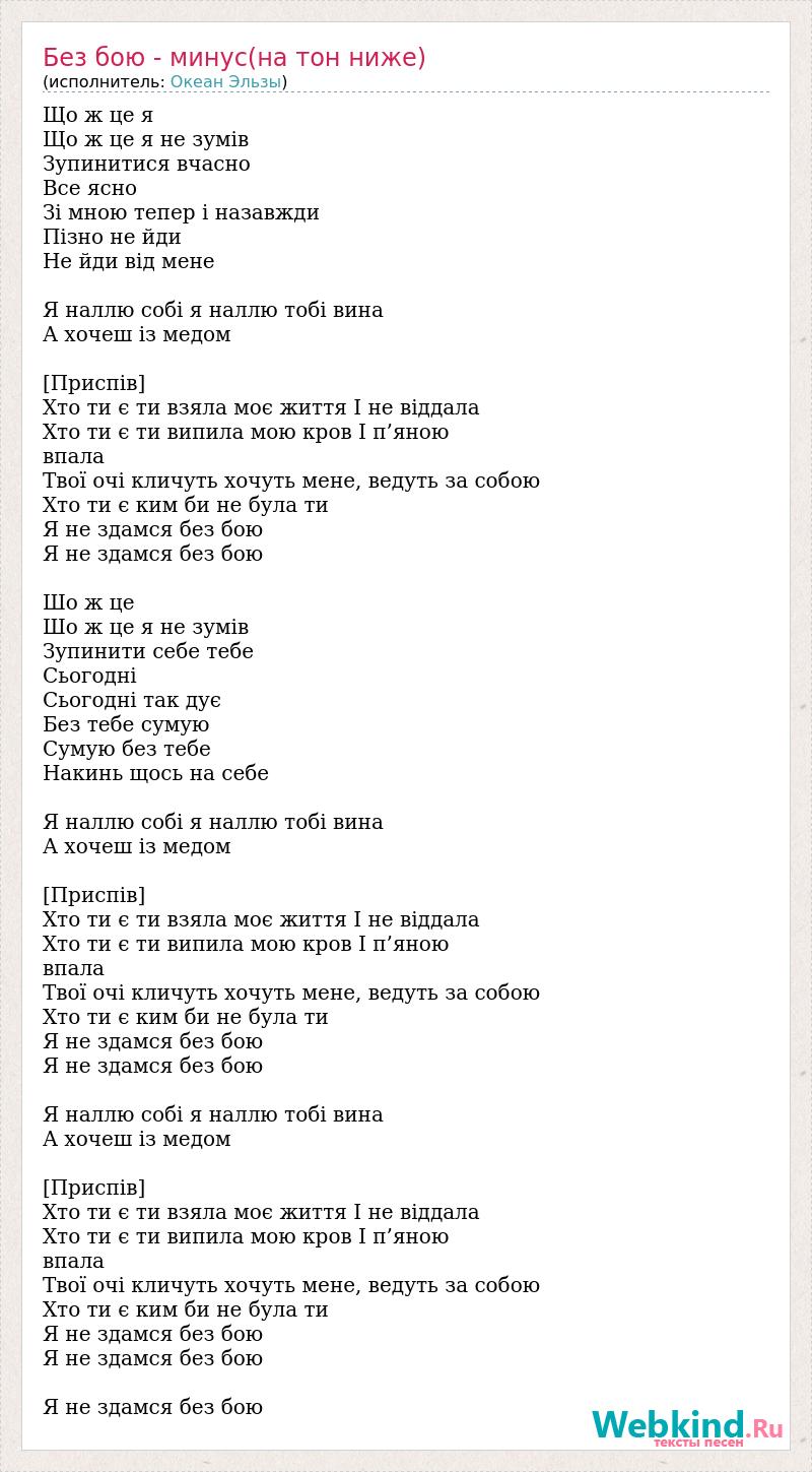 А как ты думаешь, о чем песня "Без бою - минус(на тон ниже)" ?