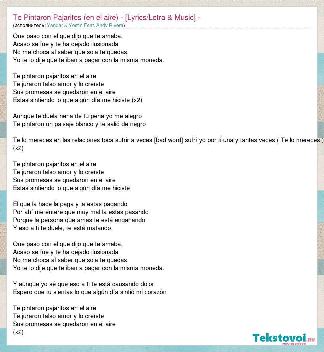 Главная→Исполнители→Yandar & Yostin Feat. Andy Rivera→Te Pintaron Pajaritos (en el aire) - [Lyrics/Letra & Music] -