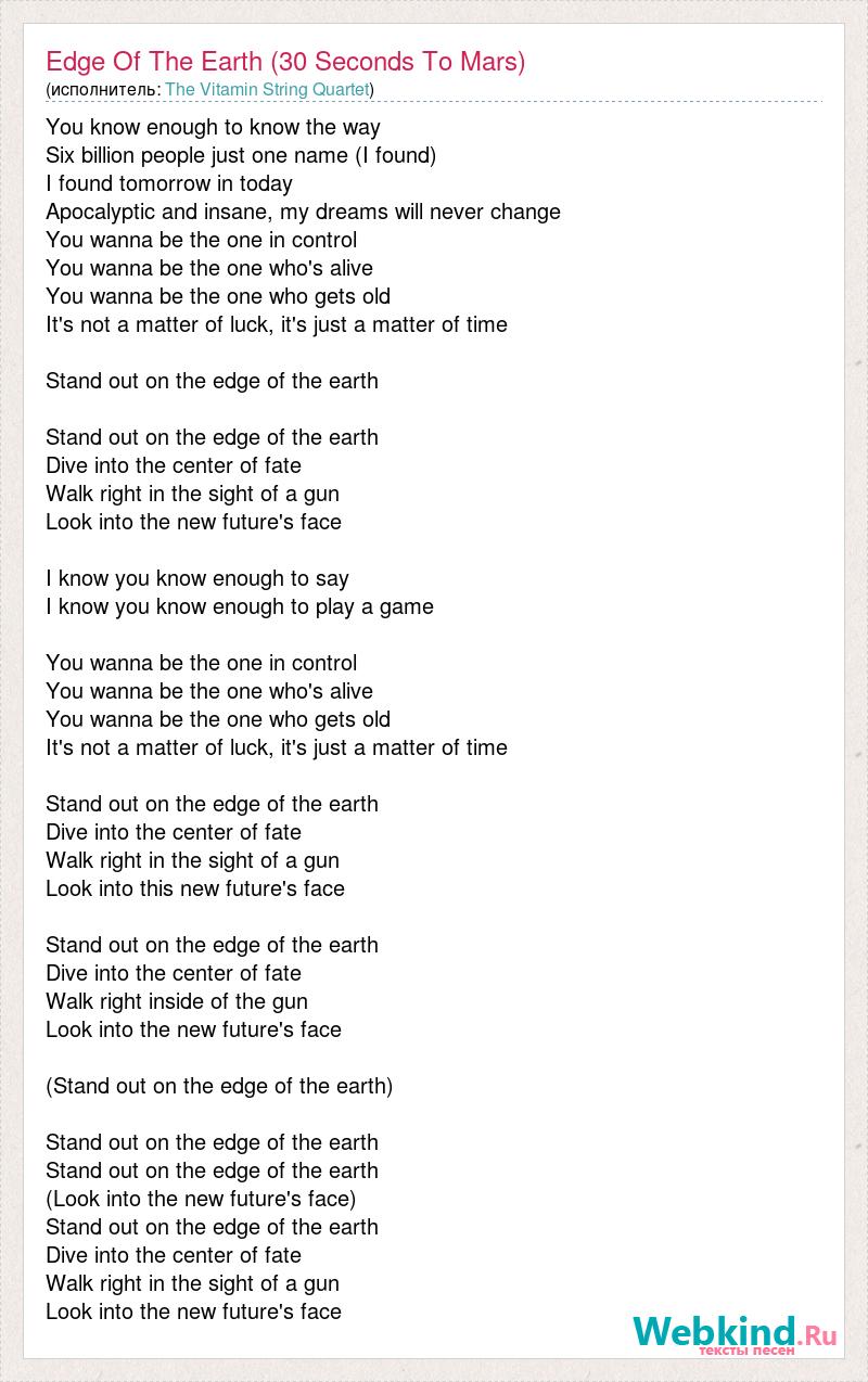 А как ты думаешь, о чем песня "Edge Of The Earth (30 Seconds To Mars)" ?