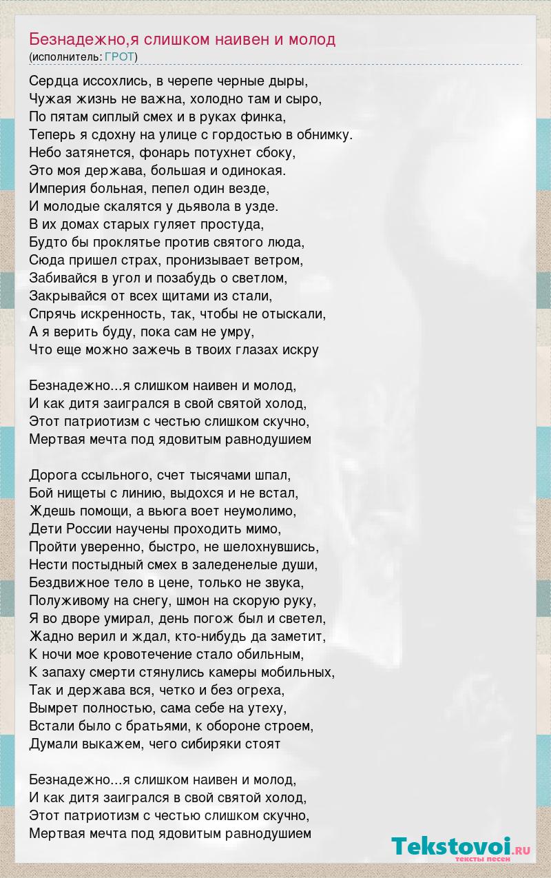 А как ты думаешь, о чем песня "Безнадежно,я слишком наивен и молод" ?