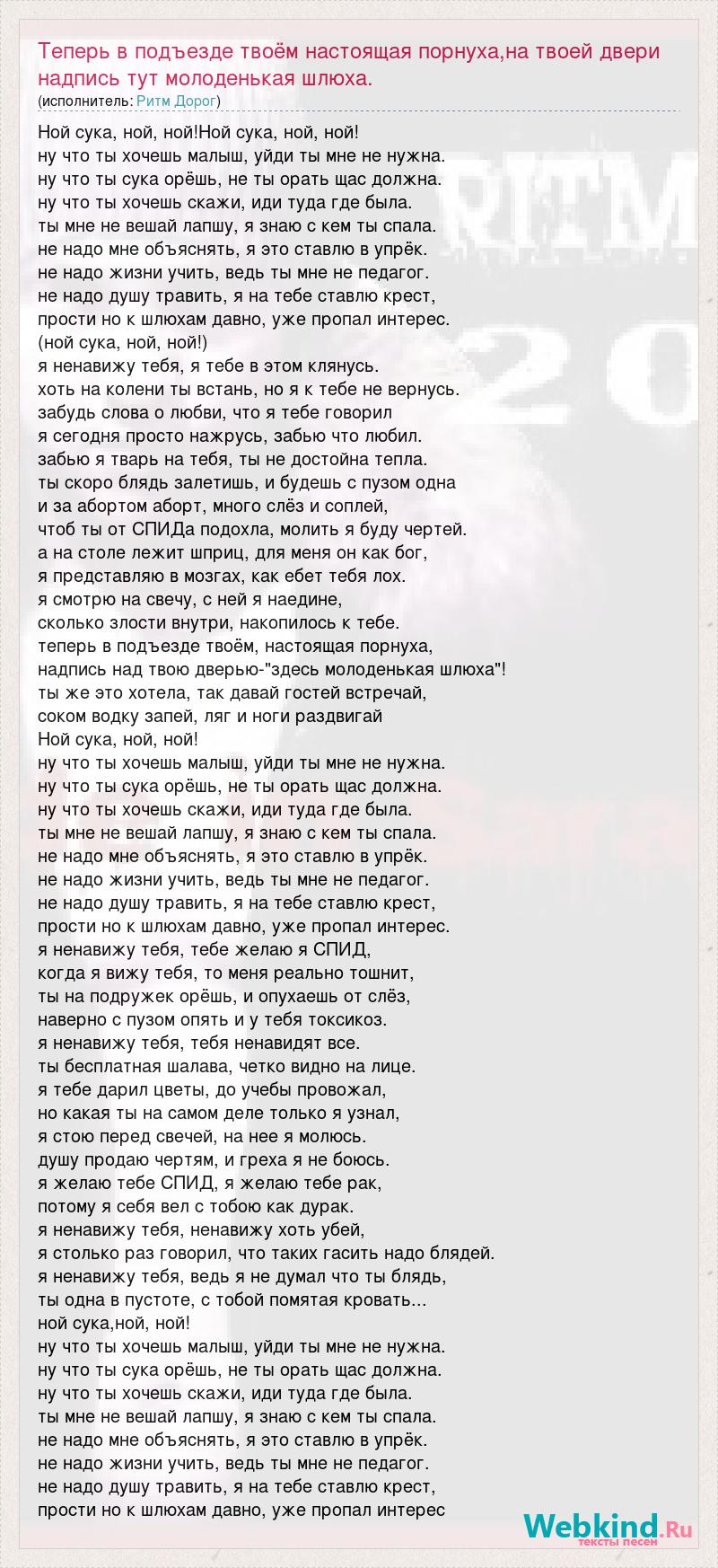 Главная→Исполнители→Ритм Дорог→Теперь в подъезде твоём настоящая порнуха,на твоей двери надпись тут молоденькая