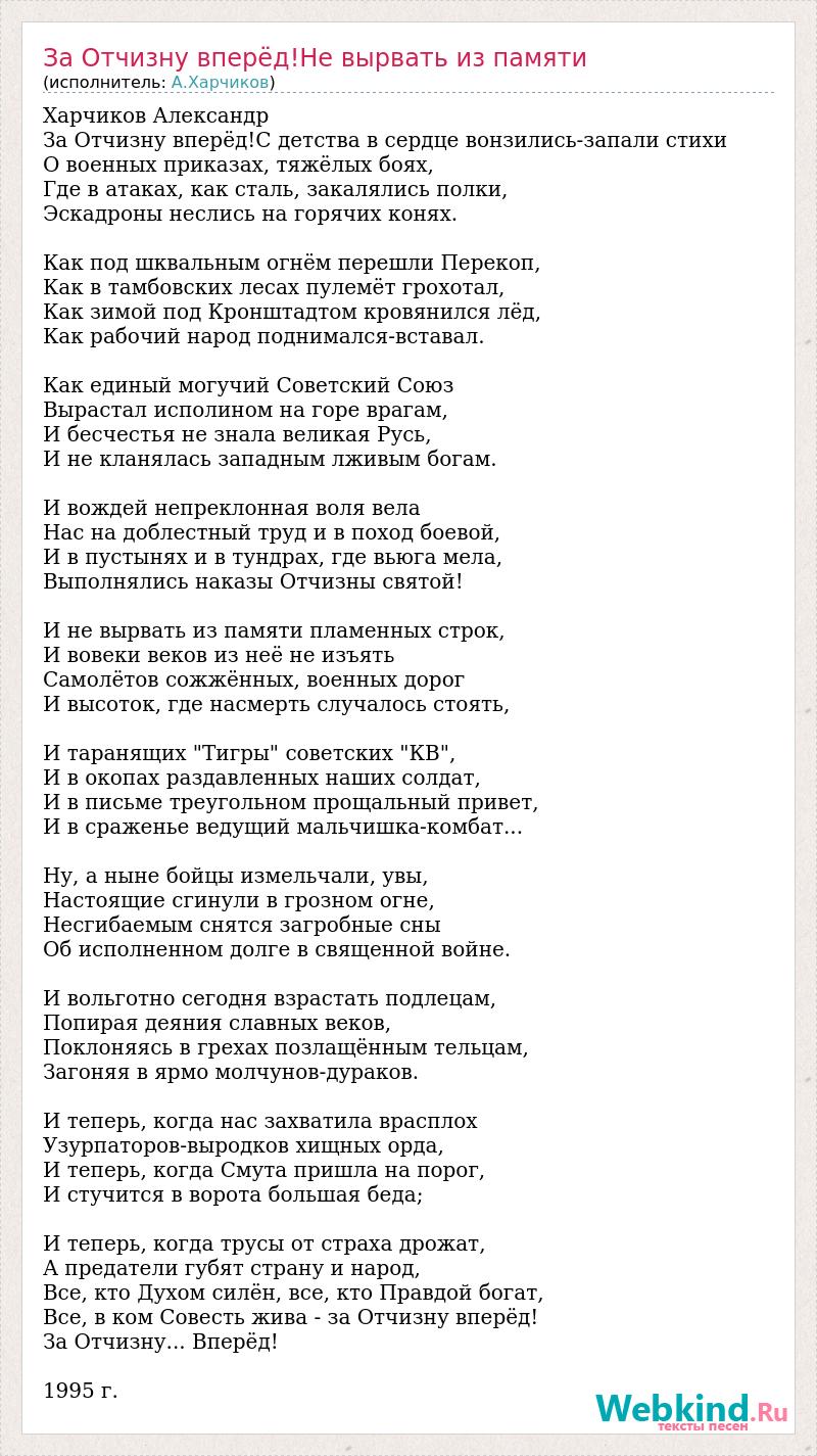 За Отчизну вперёд!Не вырвать из памяти