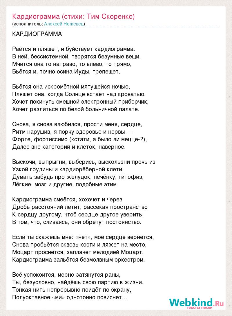 А как ты думаешь, о чем песня "Кардиограмма (стихи: Тим Скоренко)" ?