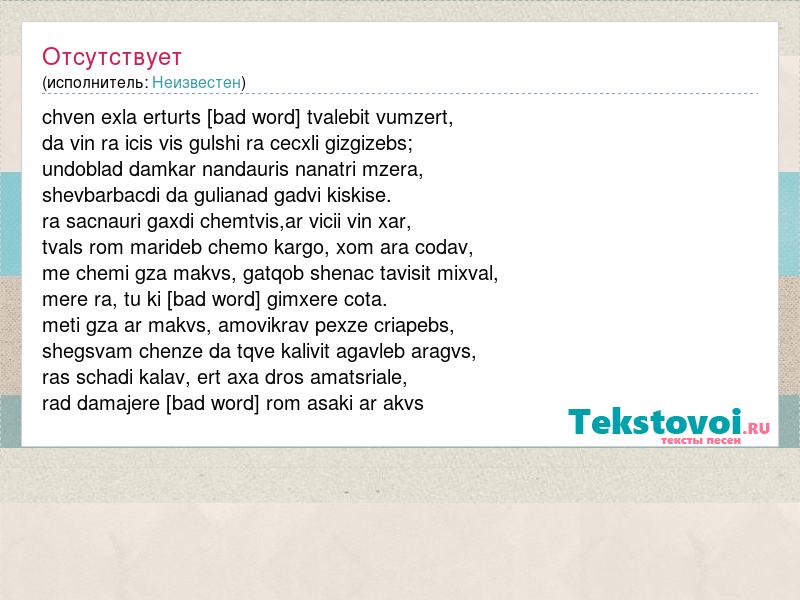 А как ты думаешь, о чем песня "chven exla erturts siyvarulis tvalebit vumzert" ?