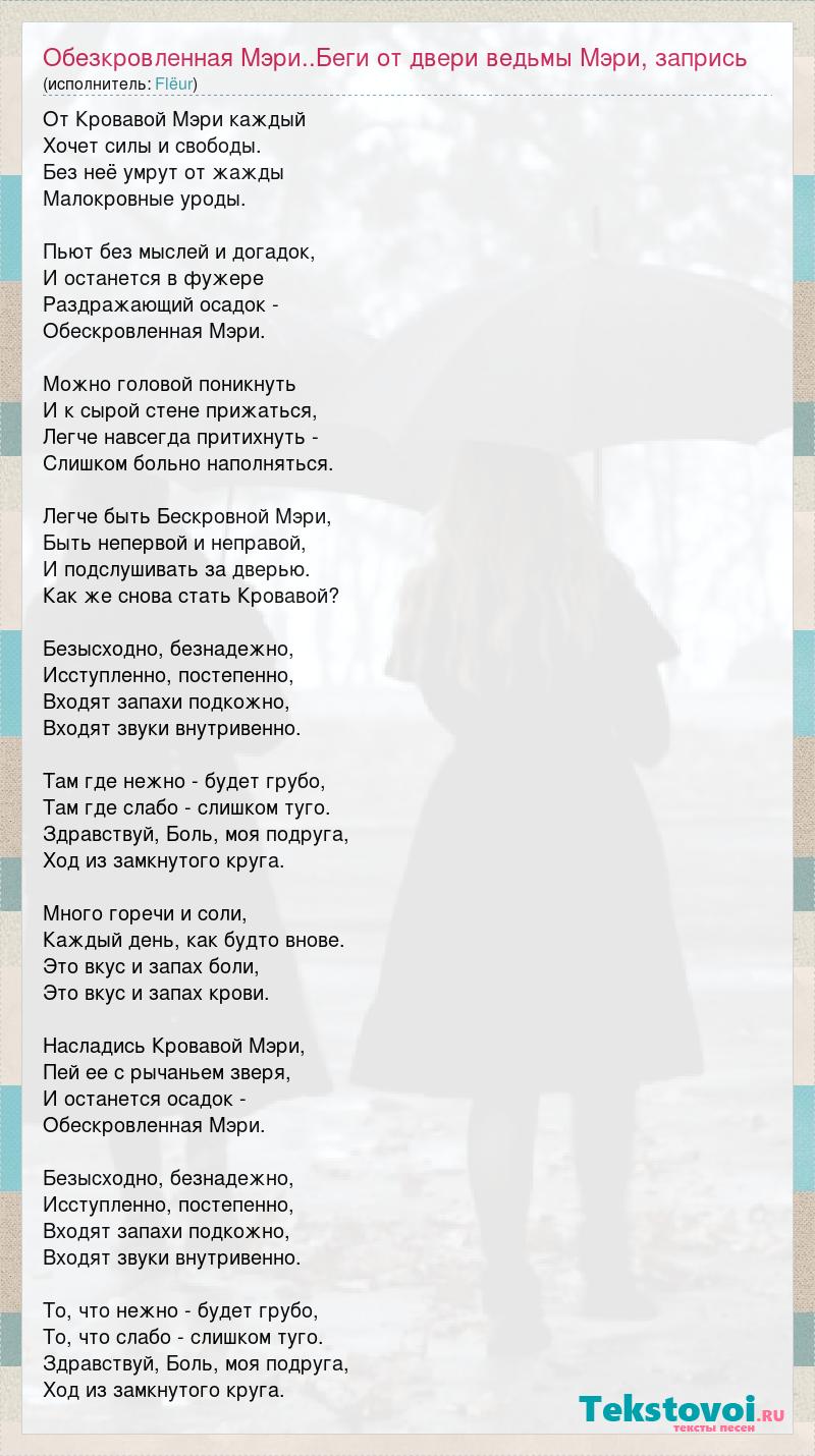 Главная→Исполнители→Flёur→Обезкровленная Мэри..Беги от двери ведьмы Мэри, запрись и потеряй ключи, а к