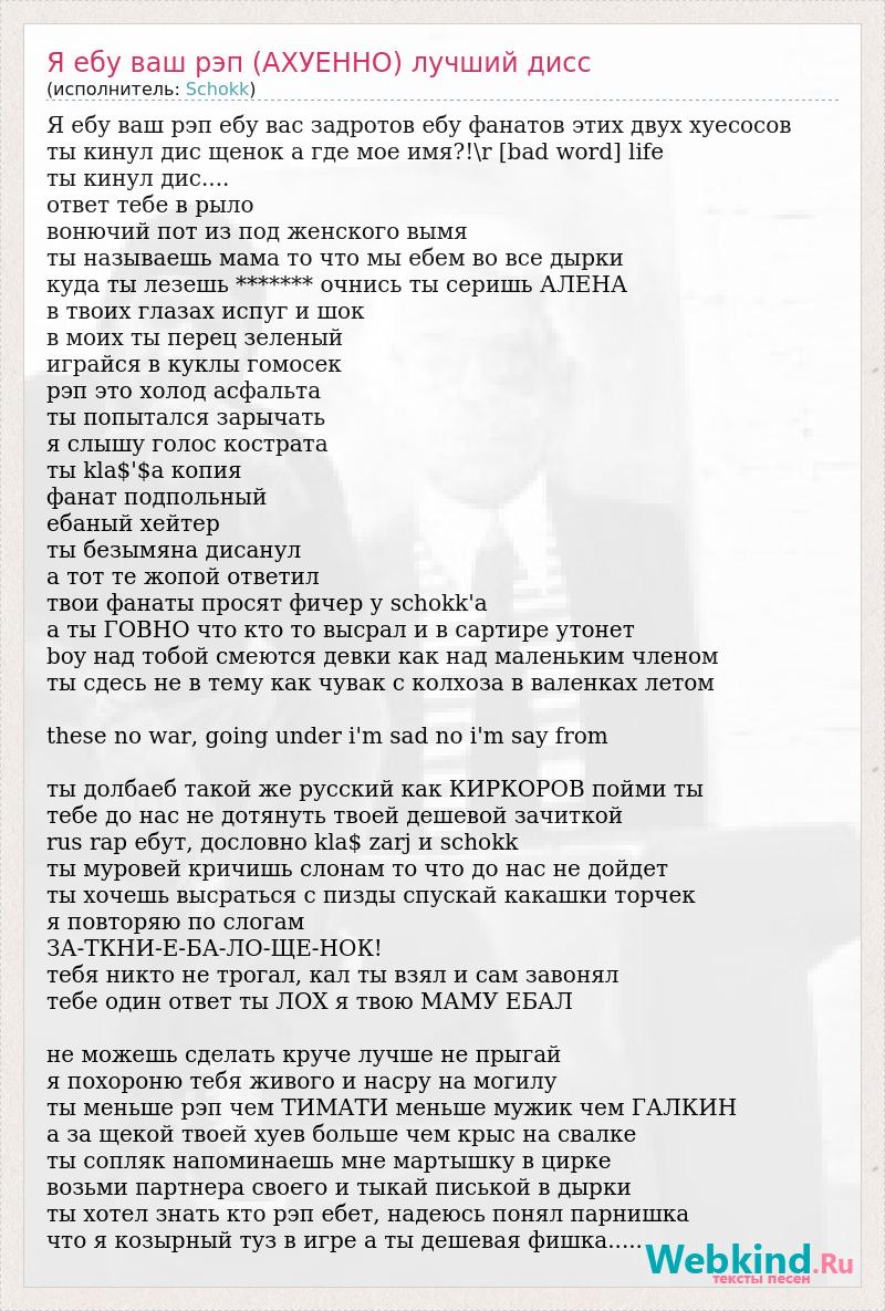 Я ебу ваш рэп (АХУЕННО) лучший дисс