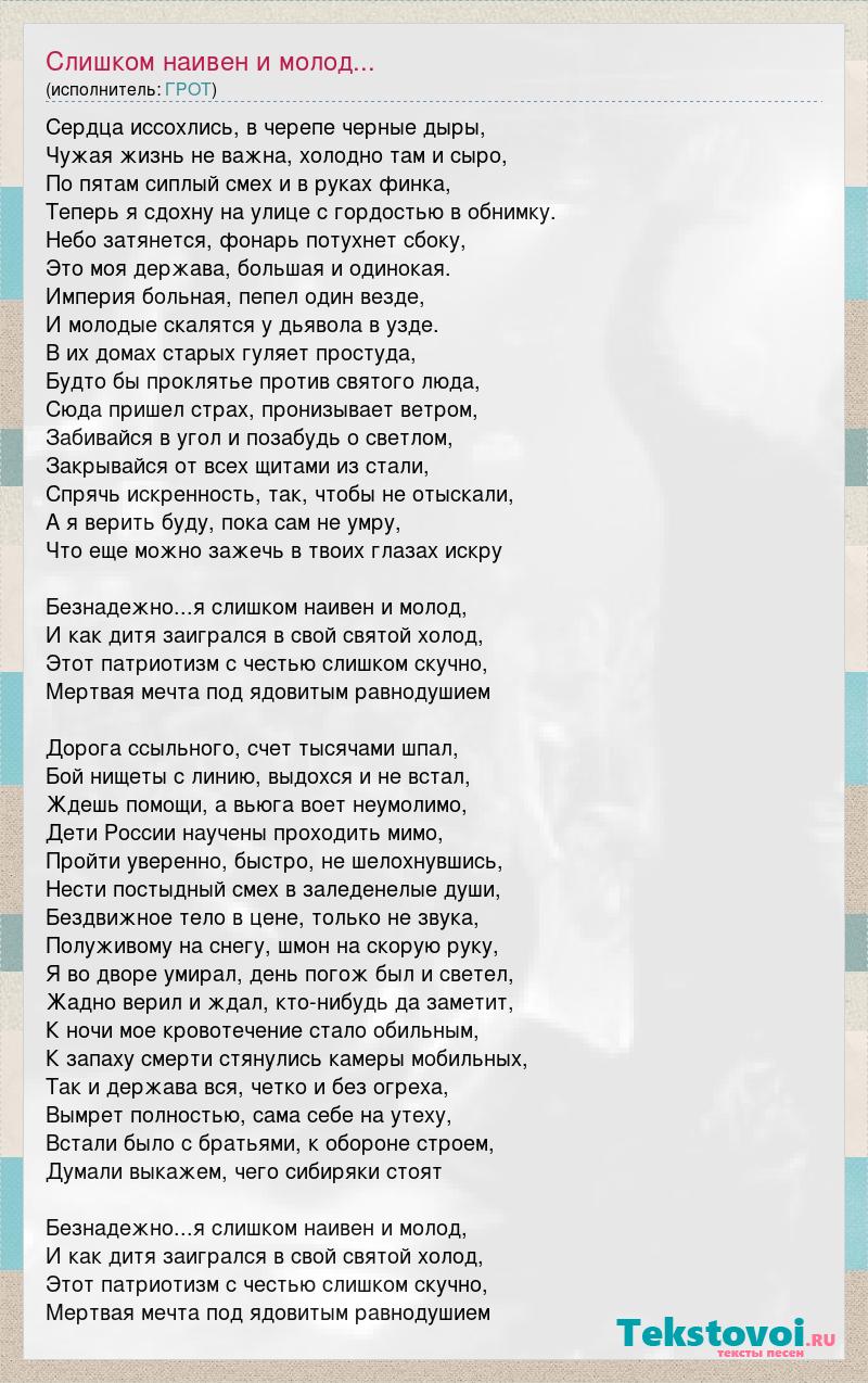 А как ты думаешь, о чем песня "Слишком наивен и молод..." ?
