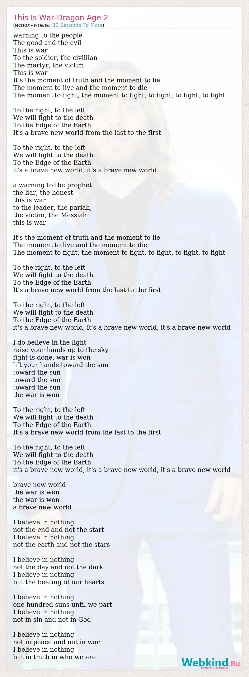 А как ты думаешь, о чем песня "This Is War-Dragon Age 2" ?