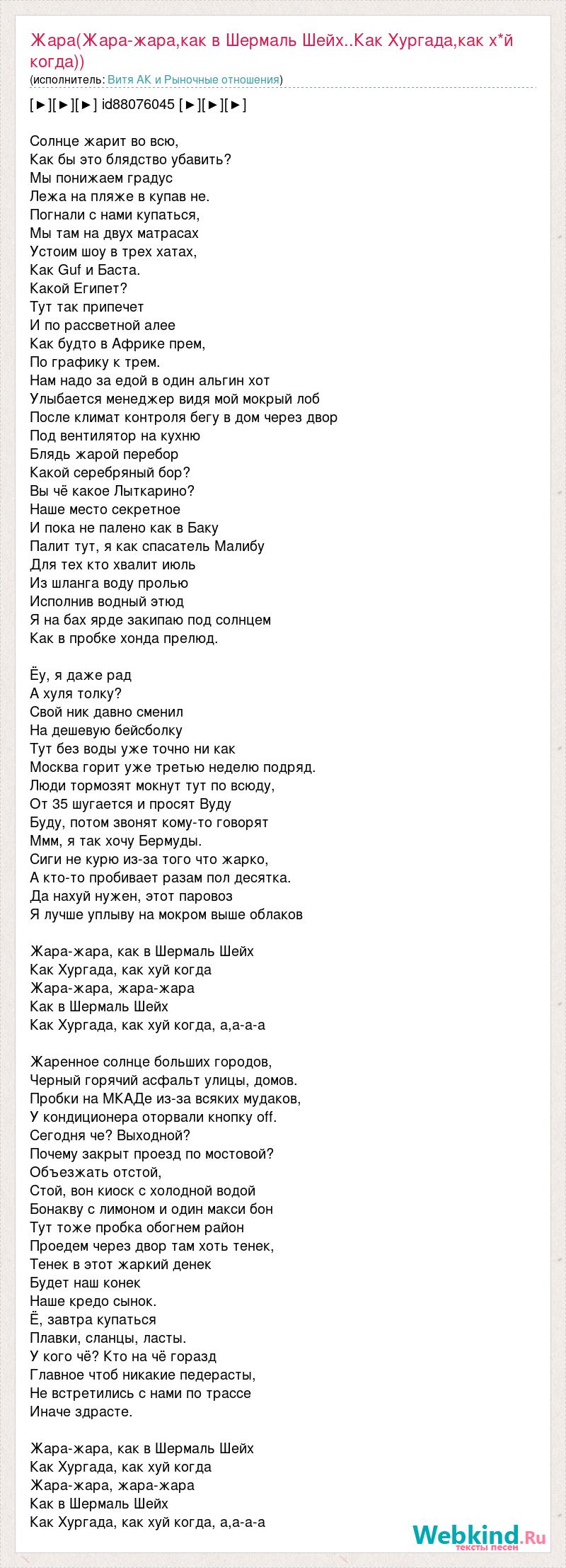 Главная→Исполнители→Витя АК и Рыночные отношения→Жара(Жара-жара,как в Шермаль Шейх..Как Хургада,как х*й когда))