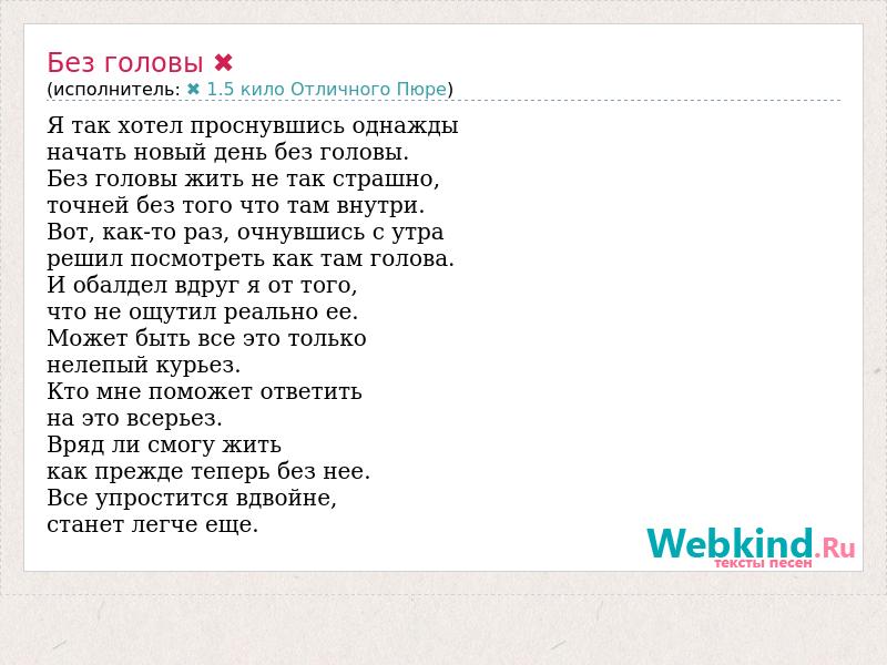 А как ты думаешь, о чем песня "Без головы ✖" ?
