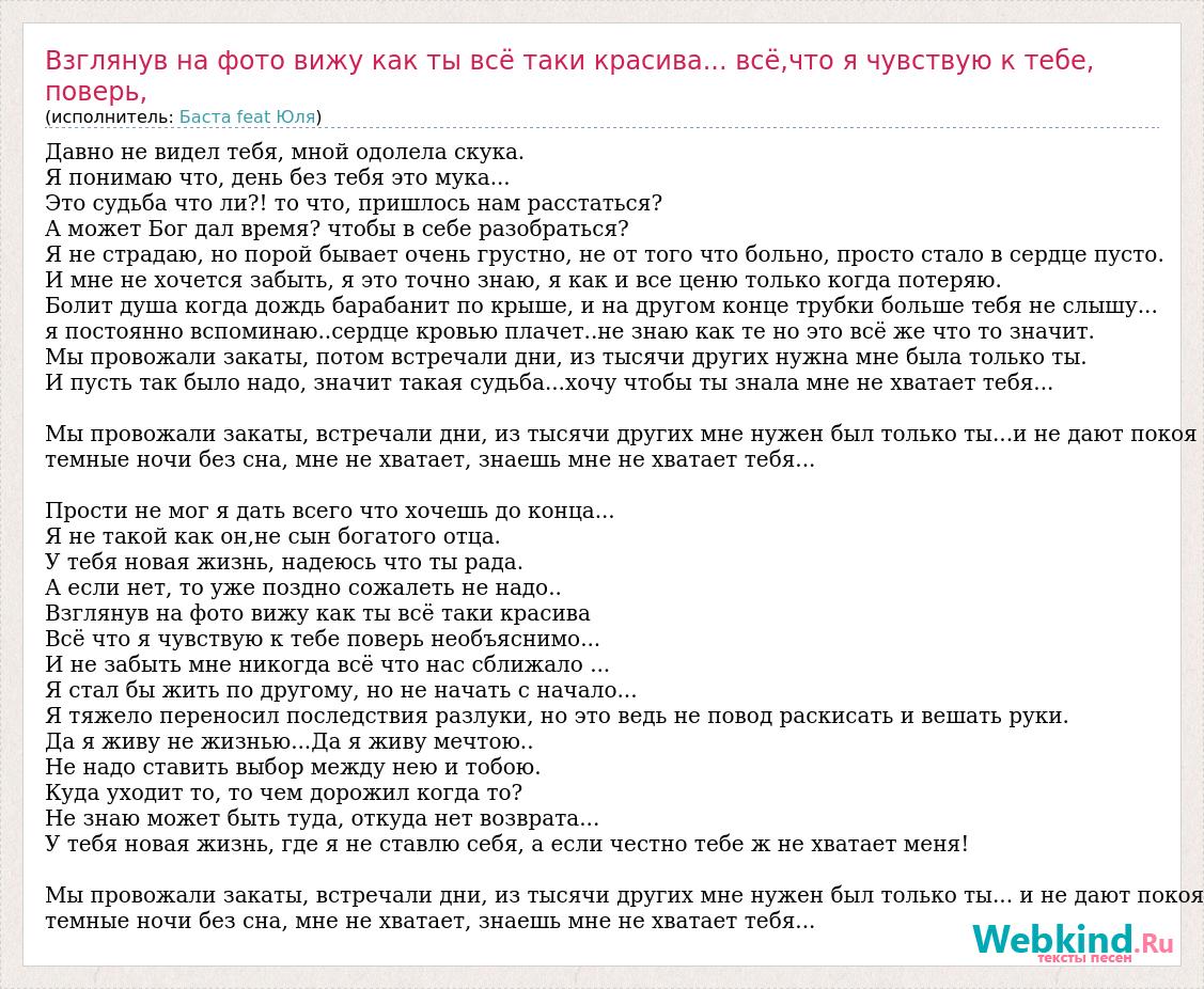 Главная→Исполнители→Баста feat Юля→Взглянув на фото вижу как ты всё таки красива... всё,что я чувствую к тебе, пове