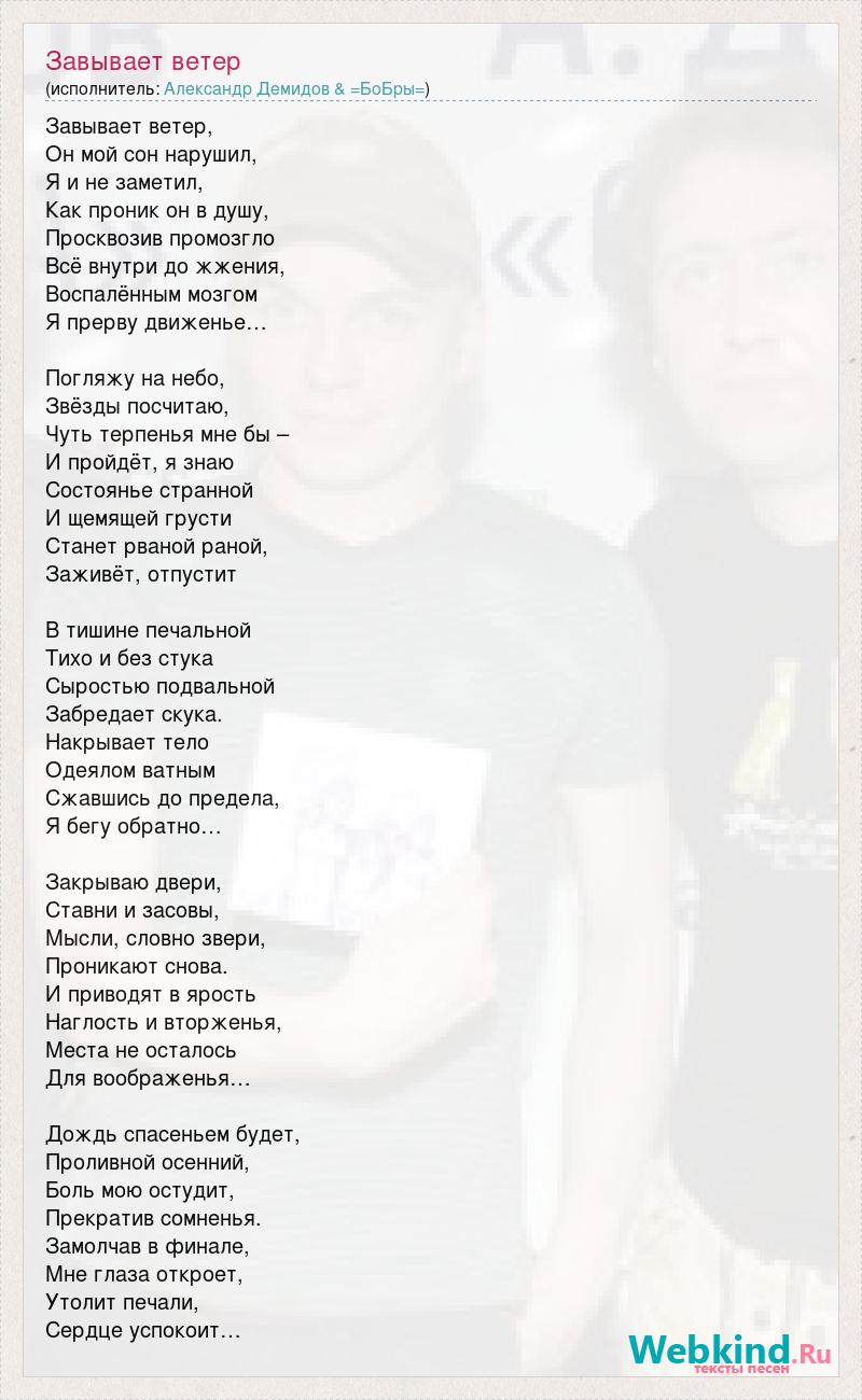 Завывает ветер, Он мой сон нарушил, Я и не заметил, Как проник он в душу, Просквозив промозгло Всё внутри до жжения, Воспалённым мозгом Я прерву движенье… Погляжу на небо, Звёзды посчитаю, Чуть терпенья мне бы – И пройдёт, я знаю Состоянье странной И щемящей грусти Станет рваной раной, Заживёт, отпустит В тишине печальной Тихо и без стука Сыростью подвальной Забредает скука. Накрывает тело Одеялом ватным Сжавшись до предела, Я бегу обратно… Закрываю двери, Ставни и засовы, Мысли, словно звери, Проникают снова. И приводят в ярость Наглость и вторженья, Места не осталось Для воображенья… Дождь спасеньем будет, Проливной осенний, Боль мою остудит, Прекратив сомненья. Замолчав в финале, Мне глаза откроет, Утолит печали, Сердце успокоит…