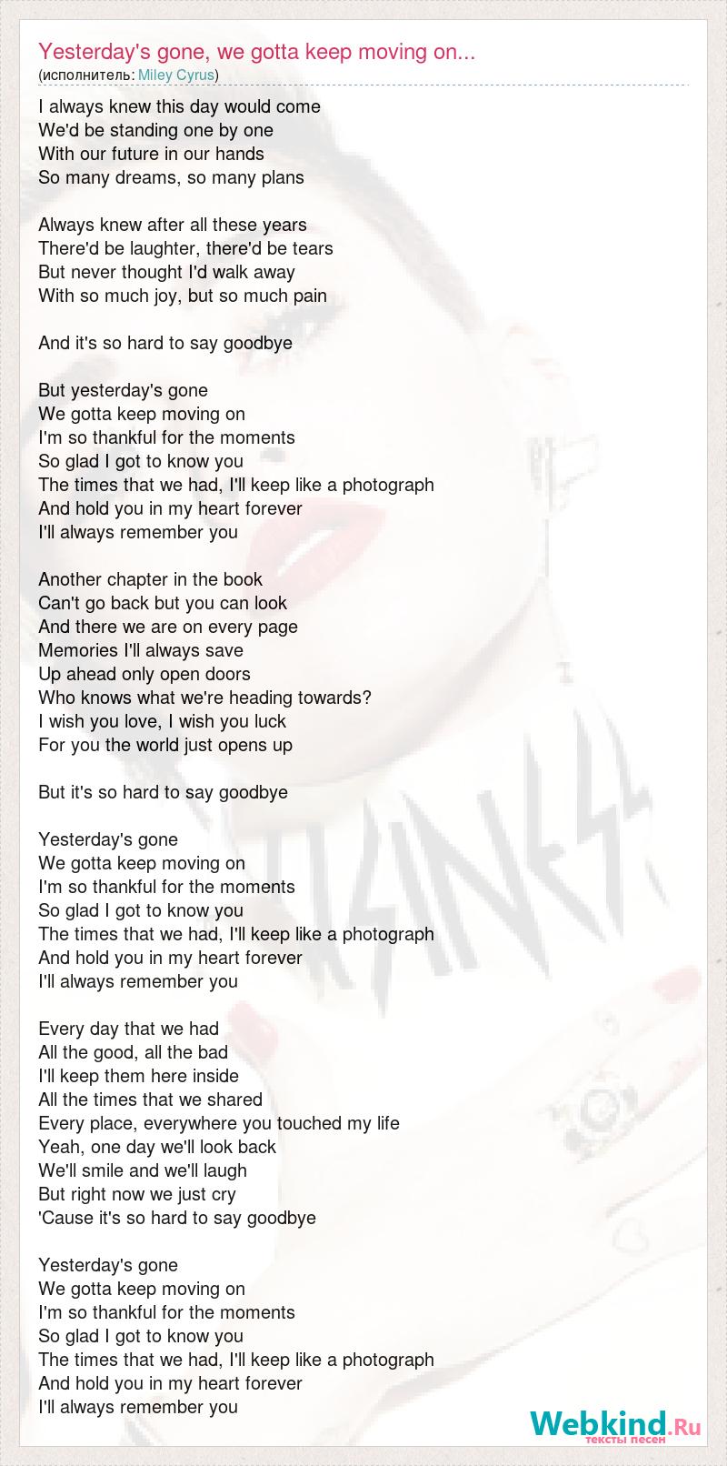 А как ты думаешь, о чем песня "Yesterday's gone, we gotta keep moving on..." ?