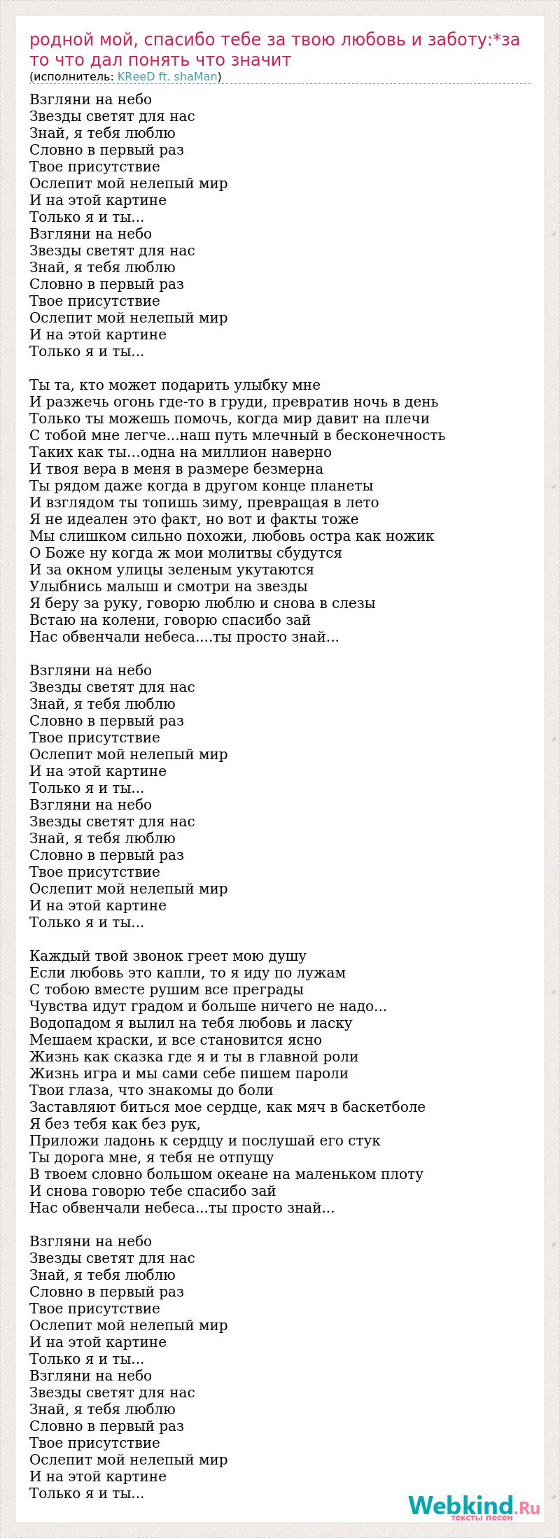 Главная→Исполнители→KReeD ft. shaMan→Родной мой, спасибо тебе за твою любовь и заботу:*за то что дал понять