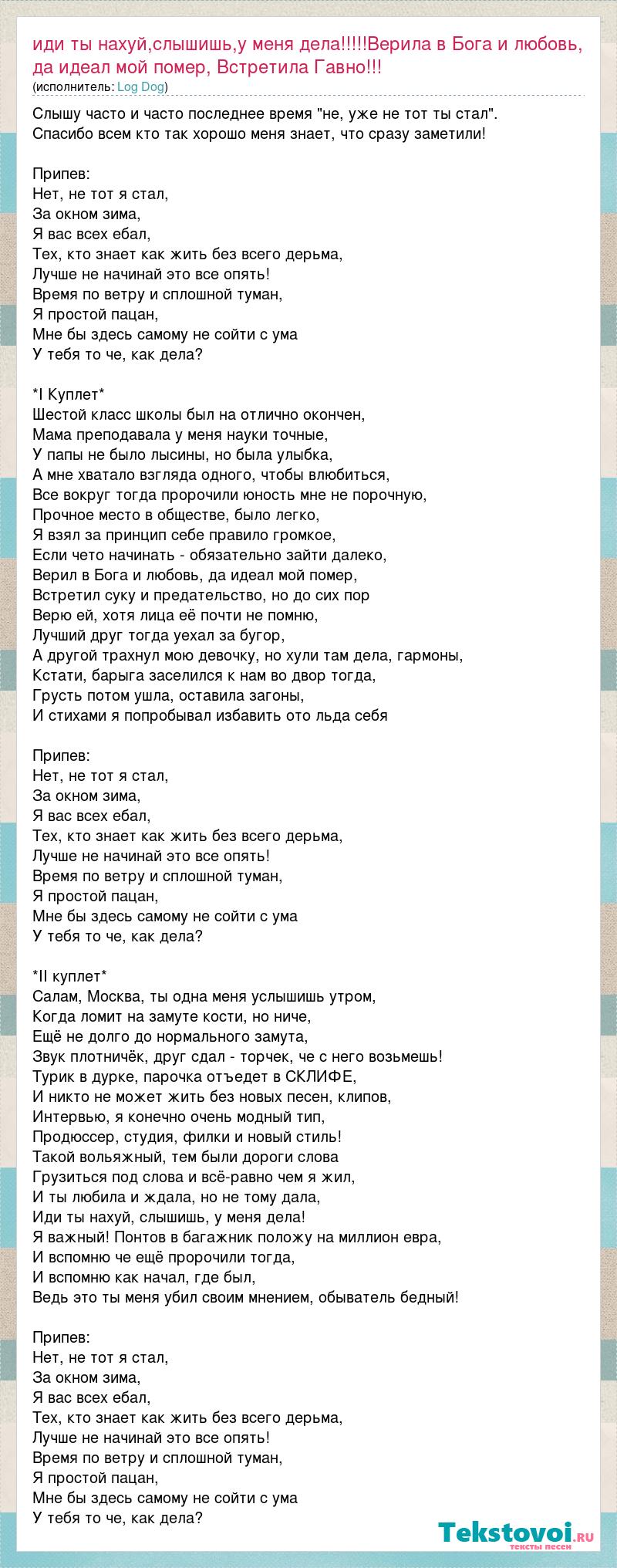 Главная→Исполнители→Log Dog→Иди ты нахуй,слышишь,у меня дела!!!!!Верилa в Бога и любовь, да идеал мой