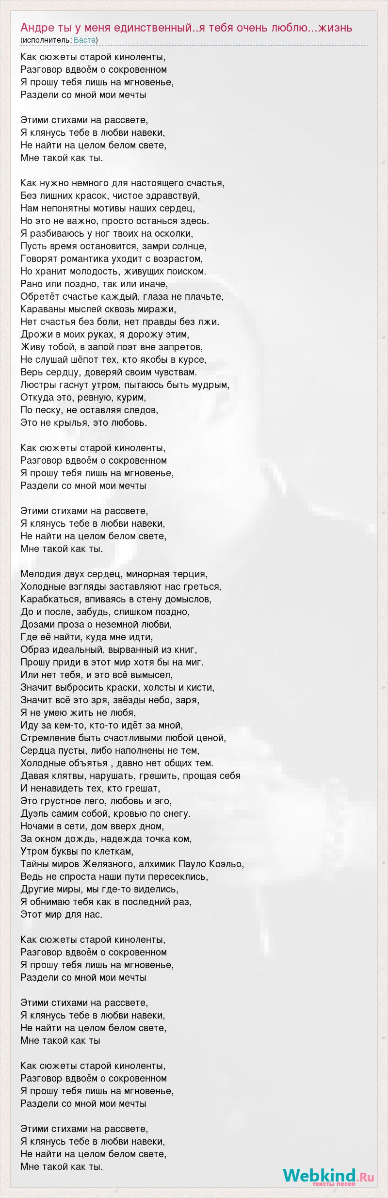 Главная→Исполнители→Баста→Андре ты у меня единственный..я тебя очень люблю...жизнь без тебя не что(так