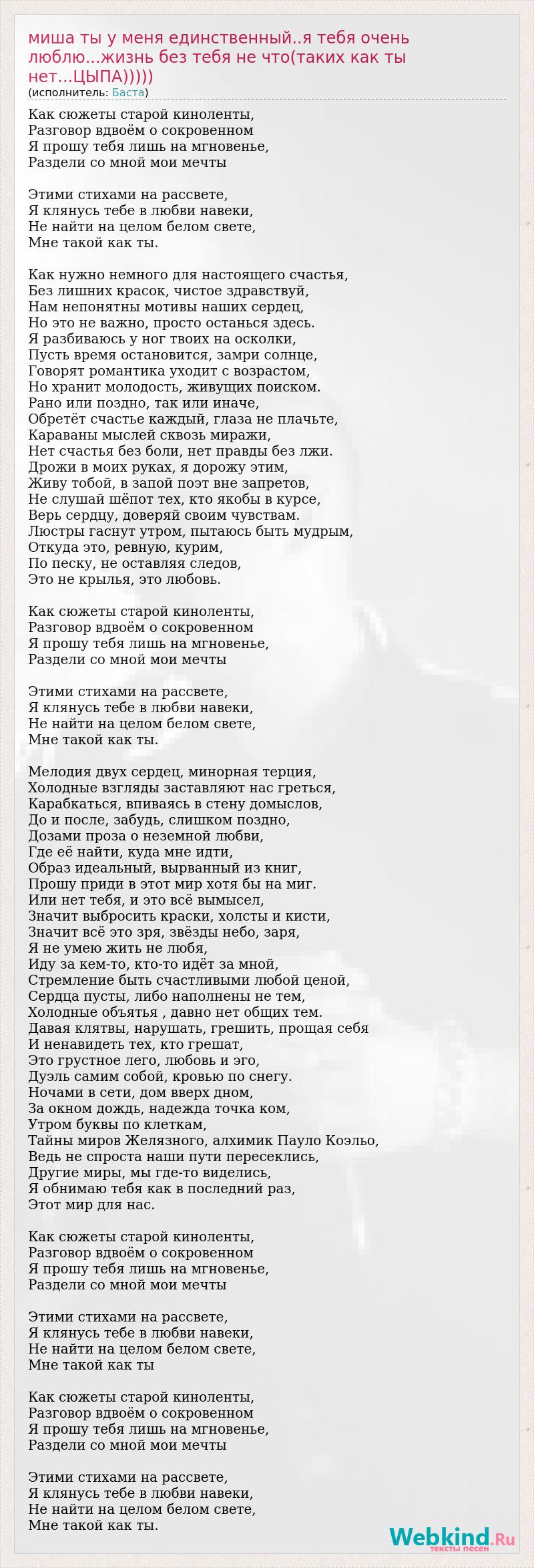Главная→Исполнители→Баста→Миша ты у меня единственный..я тебя очень люблю...жизнь без тебя не что(та