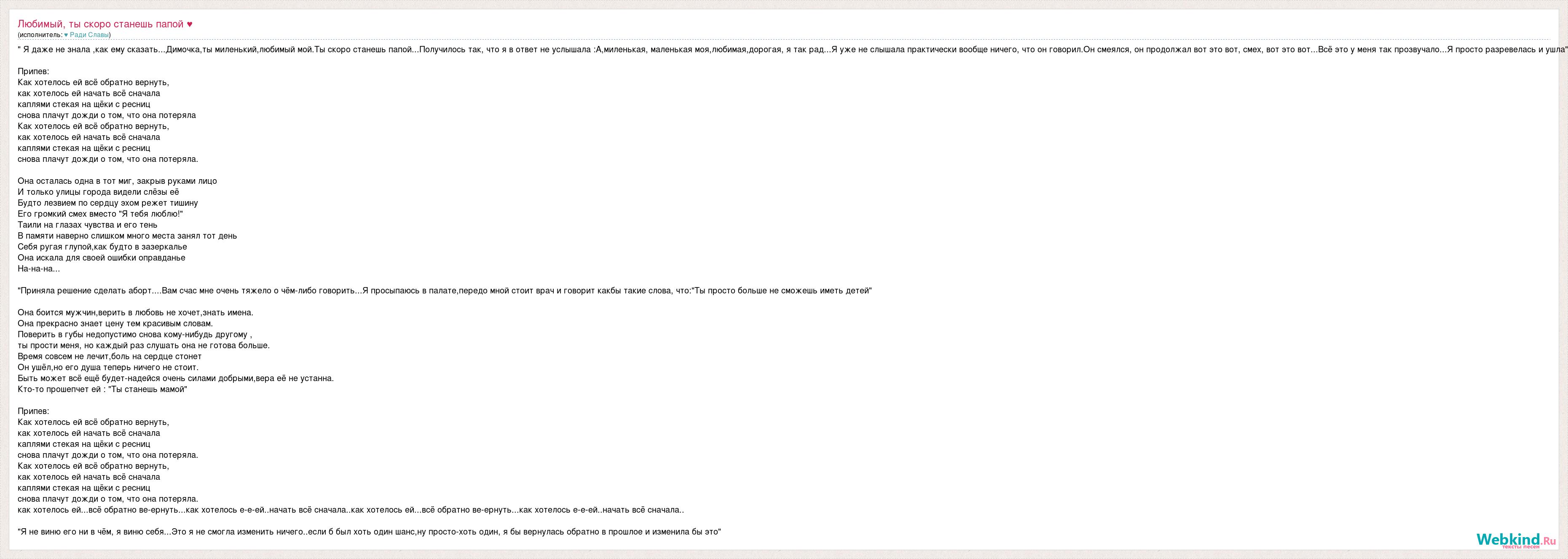 А как ты думаешь, о чем песня "Любимый, ты скоро станешь папой ♥" ?