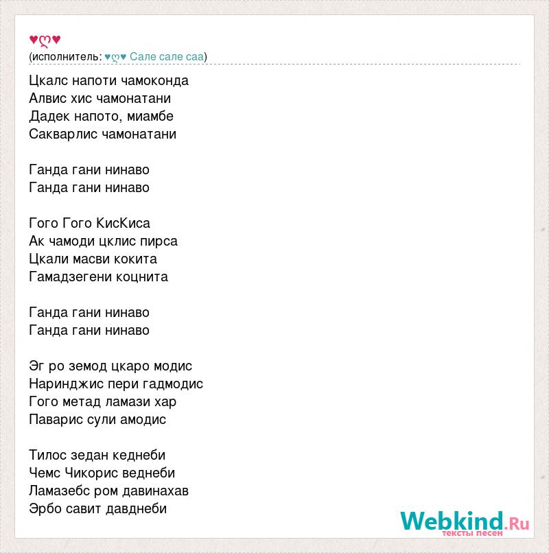 Цкалс напоти чамоконда Алвис хис чамонатани Дадек напото, миамбе Сакварлис чамонатани Ганда гани нинаво Ганда гани нинаво Гого Гого КисКиса Ак чамоди цклис пирса Цкали масви кокита Гамадзегени коцнита Ганда гани нинаво Ганда гани нинаво Эг ро земод цкаро модис Наринджис пери гадмодис Гого метад ламази хар Паварис сули амодис Тилос зедан кеднеби Чемс Чикорис веднеби Ламазебс ром давинахав Эрбо савит давднеби