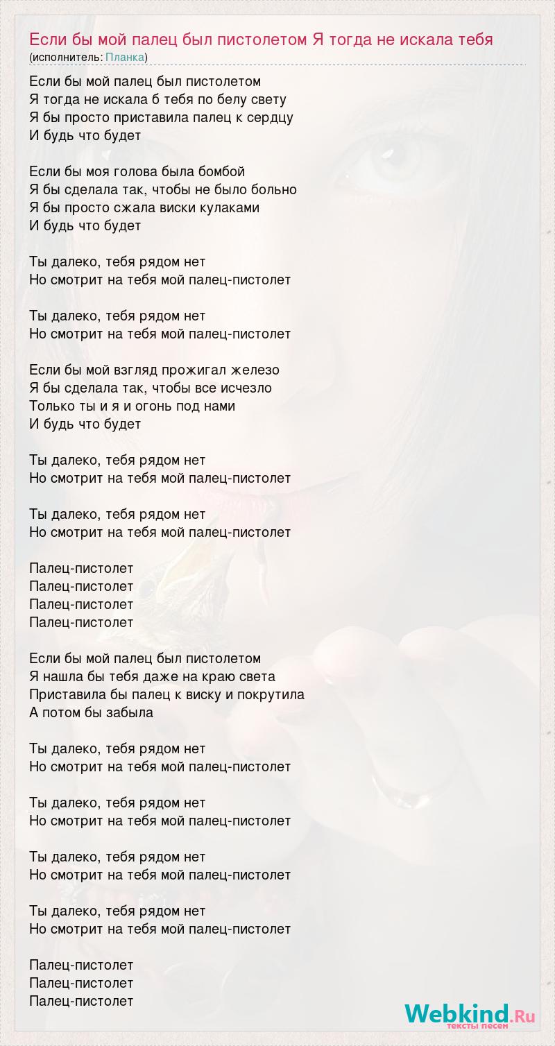Если бы мой палец был пистолетом Я тогда не искала тебя по белу свету, я