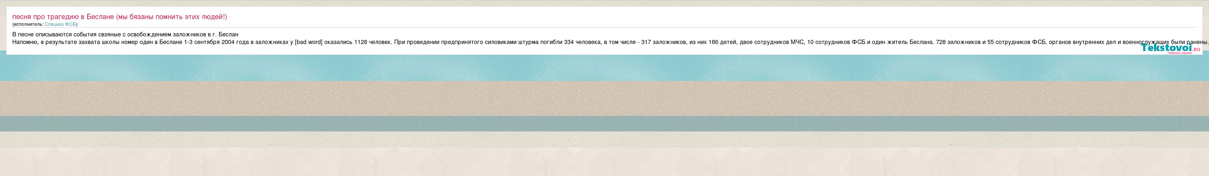 А как ты думаешь, о чем песня "Песня про трагедию в Беслане (мы бязаны помнить этих людей!)" ?