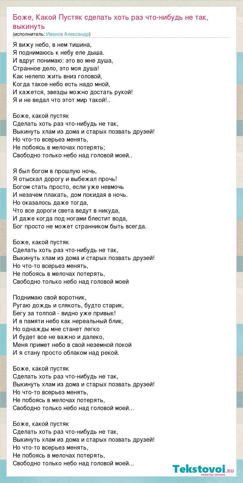 Главная→Исполнители→Иванов Александр→Боже, Какой Пустяк сделать хоть раз что-нибудь не так, выкинуть хлам из дома и с