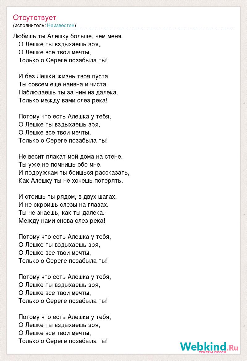 А как ты думаешь, о чем песня "Любишь ты Алешку больше, чем меня." ?