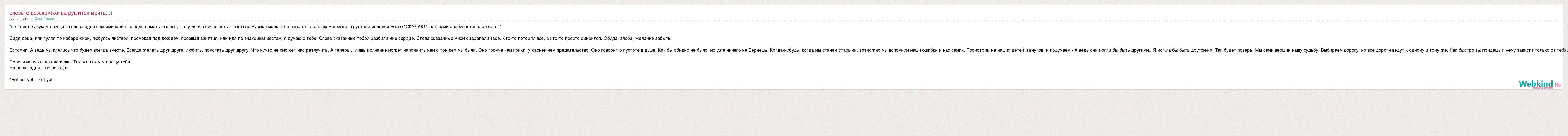 А как ты думаешь, о чем песня "Слезы с дождем(когда рушится мечта...)" ?