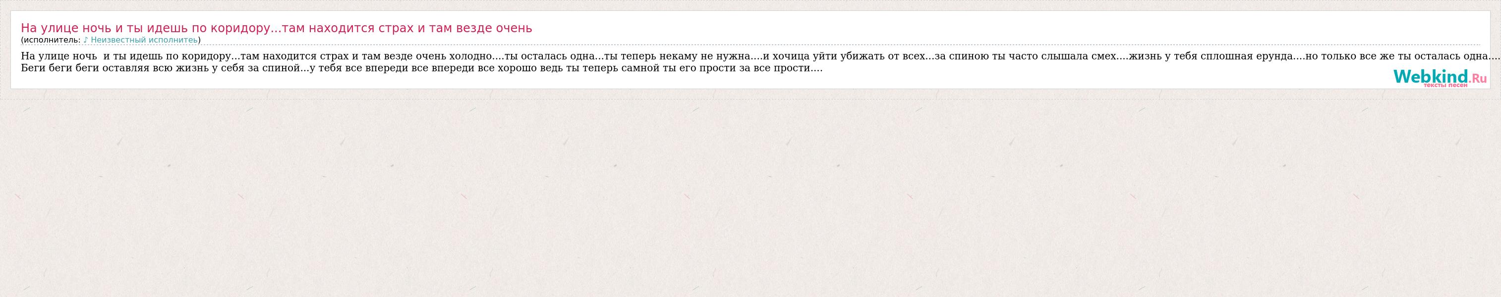 Главная→Исполнители→♪ Неизвестный исполнитеь→На улице ночь и ты идешь по коридору...там находится страх и там везде оче