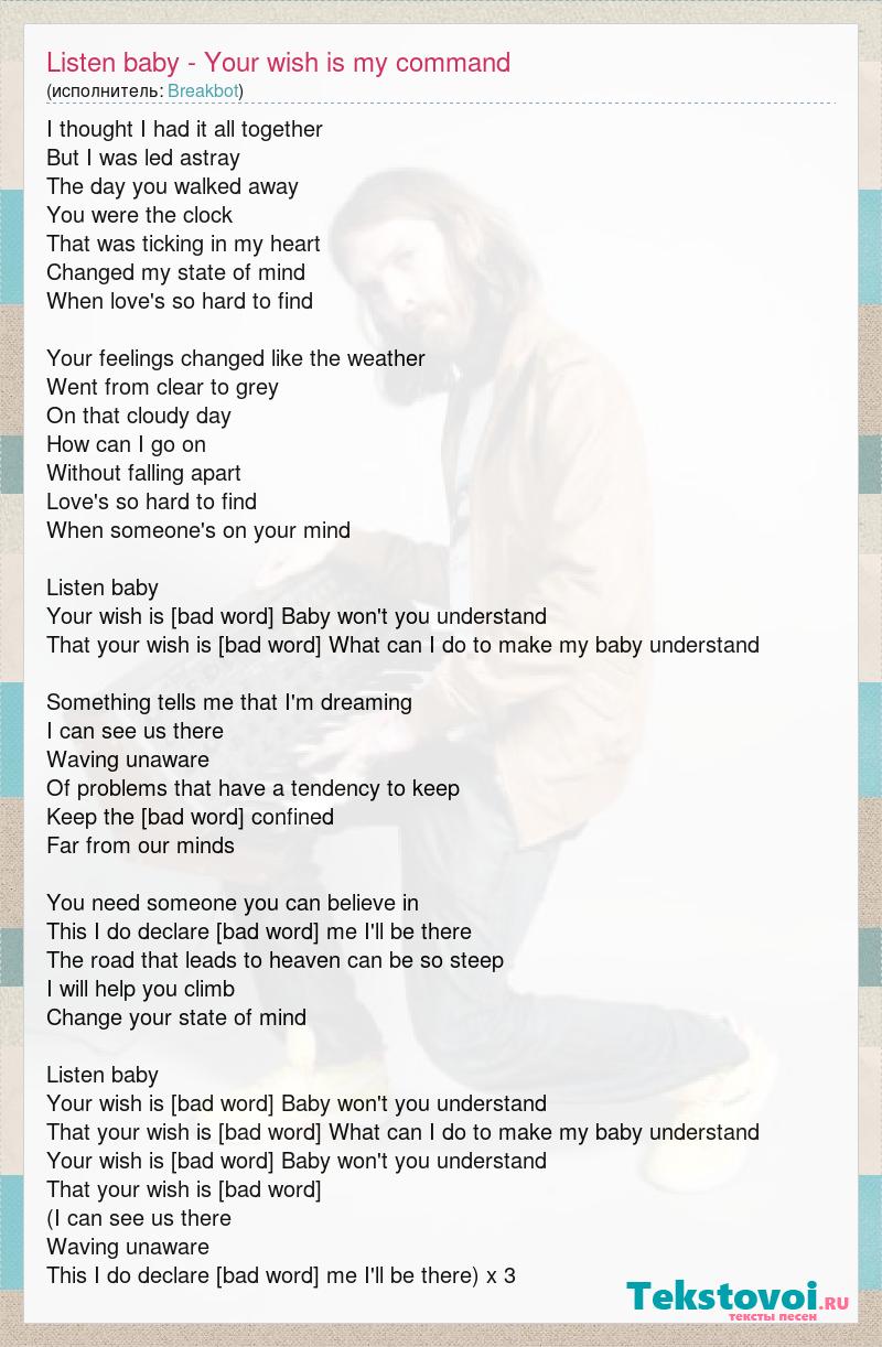 А как ты думаешь, о чем песня "Listen baby - Your wish is my command" ?