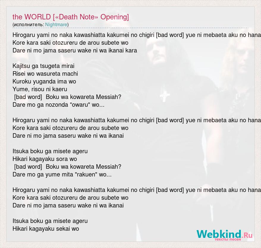 А как ты думаешь, о чем песня "The WORLD [«Death Note» Opening]" ?