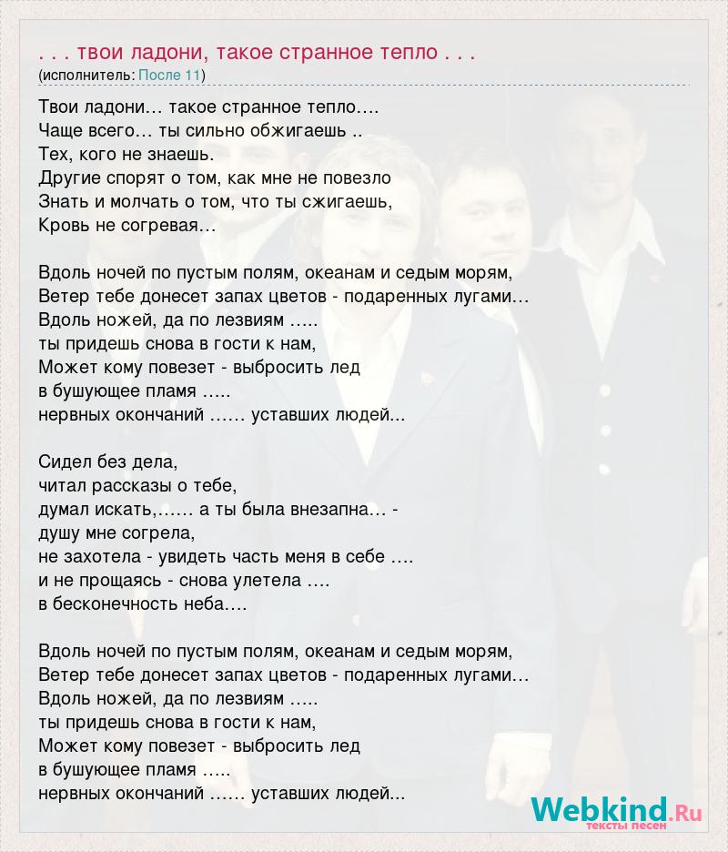 А как ты думаешь, о чем песня ". . . твои ладони, такое странное тепло . . ." ?
