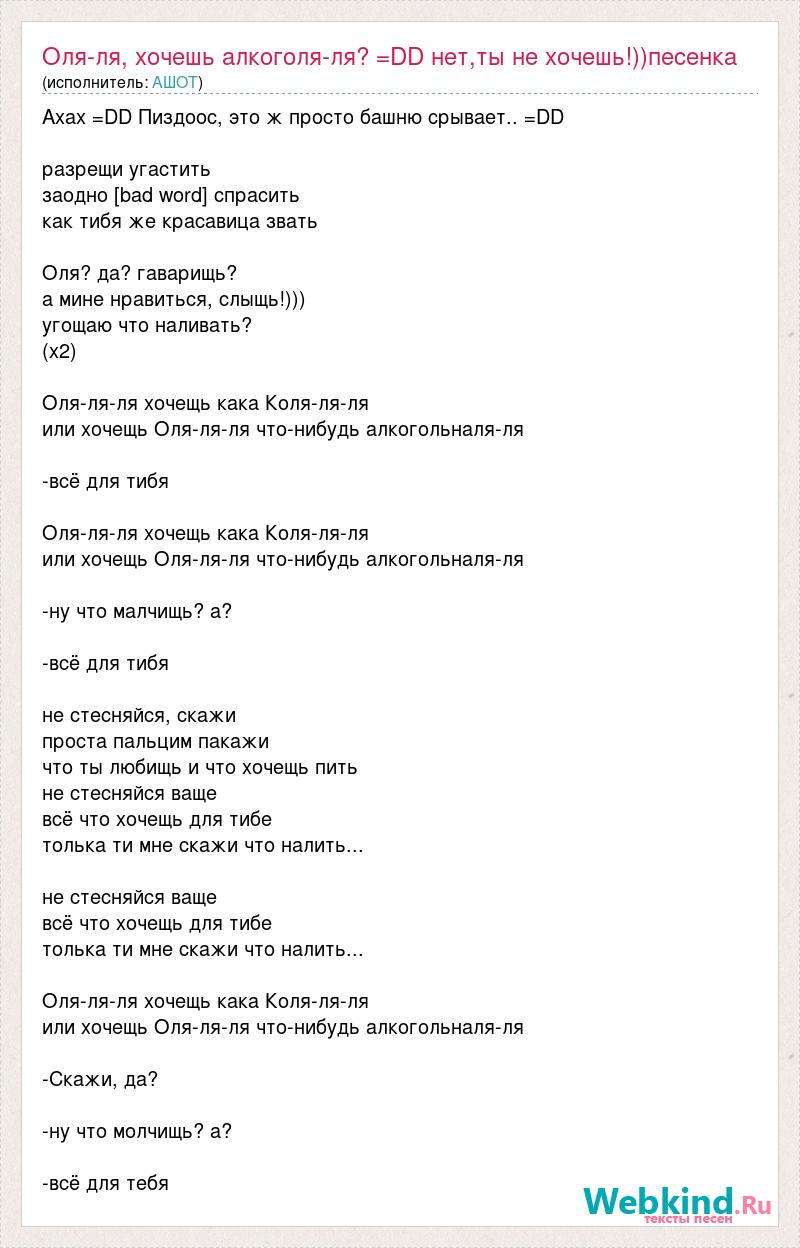 Оля-ля, хочешь алкоголя-ля? =DD нет,ты не хочешь!))песенка