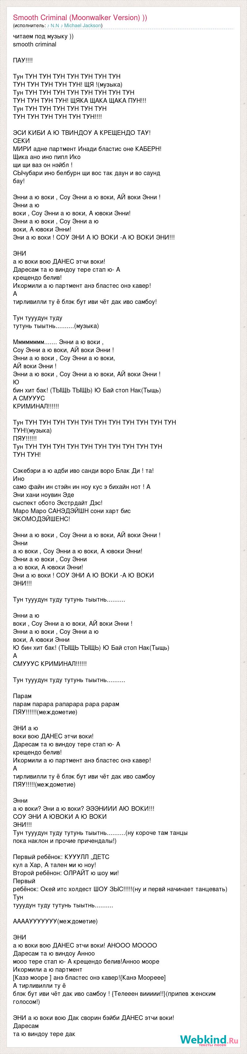 А как ты думаешь, о чем песня "Smooth Criminal (Moonwalker Version) ))" ?