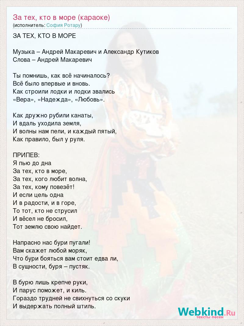 А как ты думаешь, о чем песня "За тех, кто в море (караоке)" ?