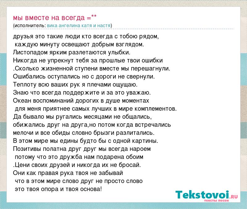 А как ты думаешь, о чем песня "Мы вместе на всегда =**" ?