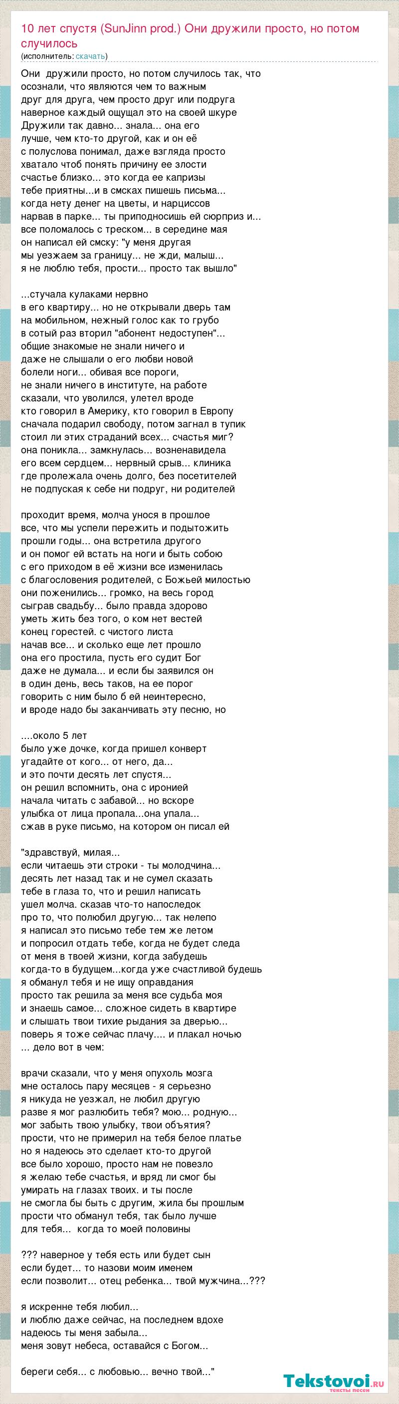 Главная→Исполнители→Скачать→10 лет спустя (SunJinn prod.) Они дружили просто, но потом случилось так,