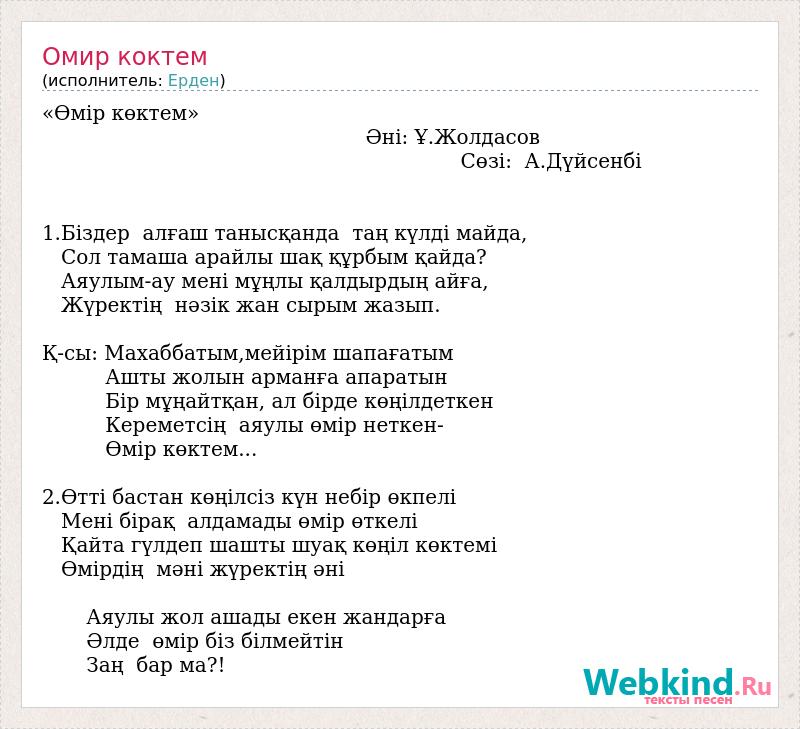 А как ты думаешь, о чем песня "Омир коктем" ?