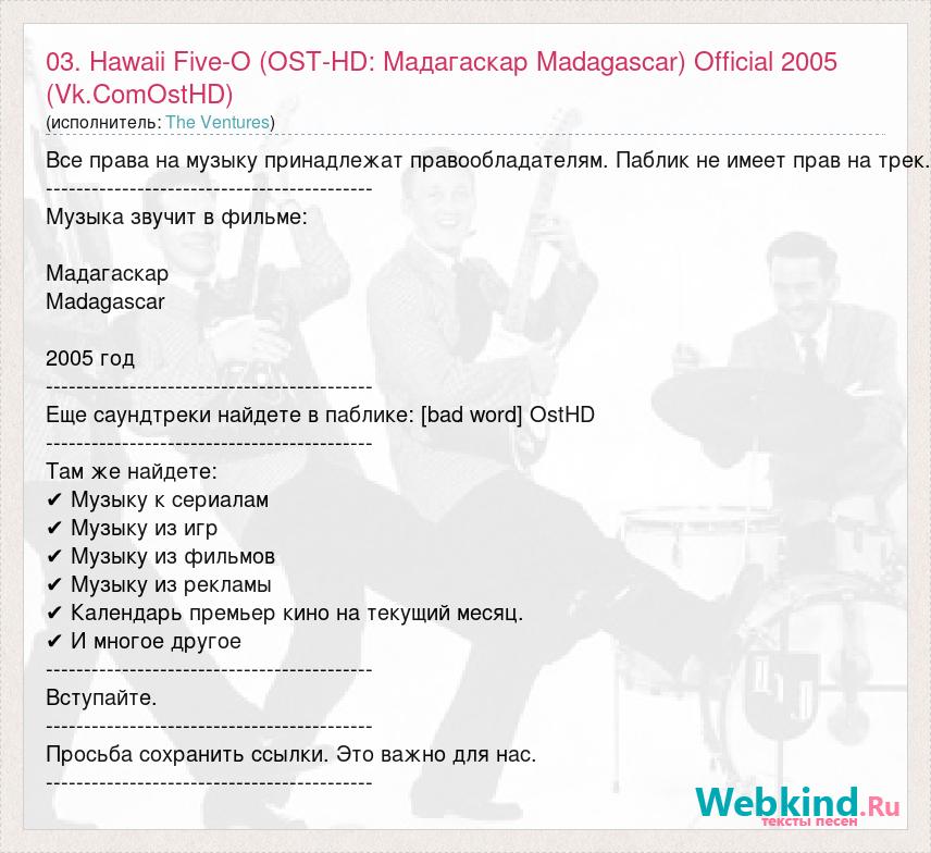 03. Hawaii Five-O (OST-HD: Мадагаскар Madagascar) Official 2005 (Vk.ComOs