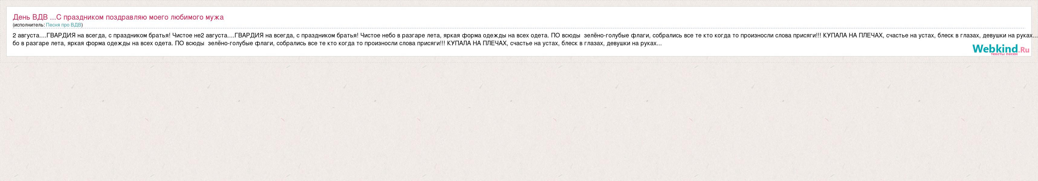 Главная→Исполнители→Песня про ВДВ→День ВДВ ...С праздником поздравляю моего любимого мужа Нестерюка Вячеслав
