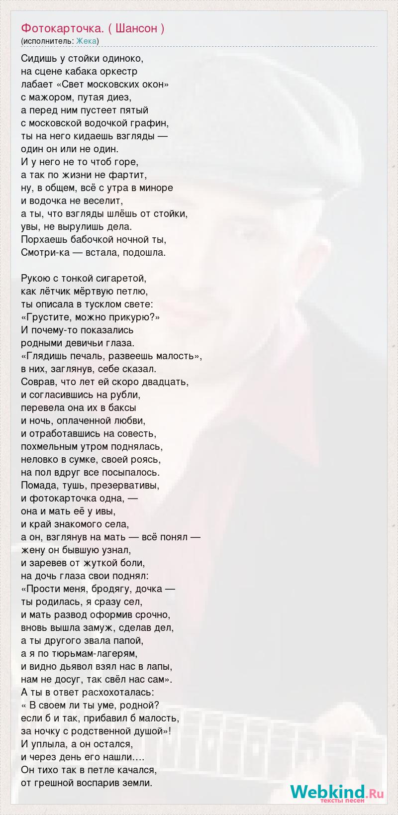 А как ты думаешь, о чем песня "Фотокарточка. ( Шансон )" ?