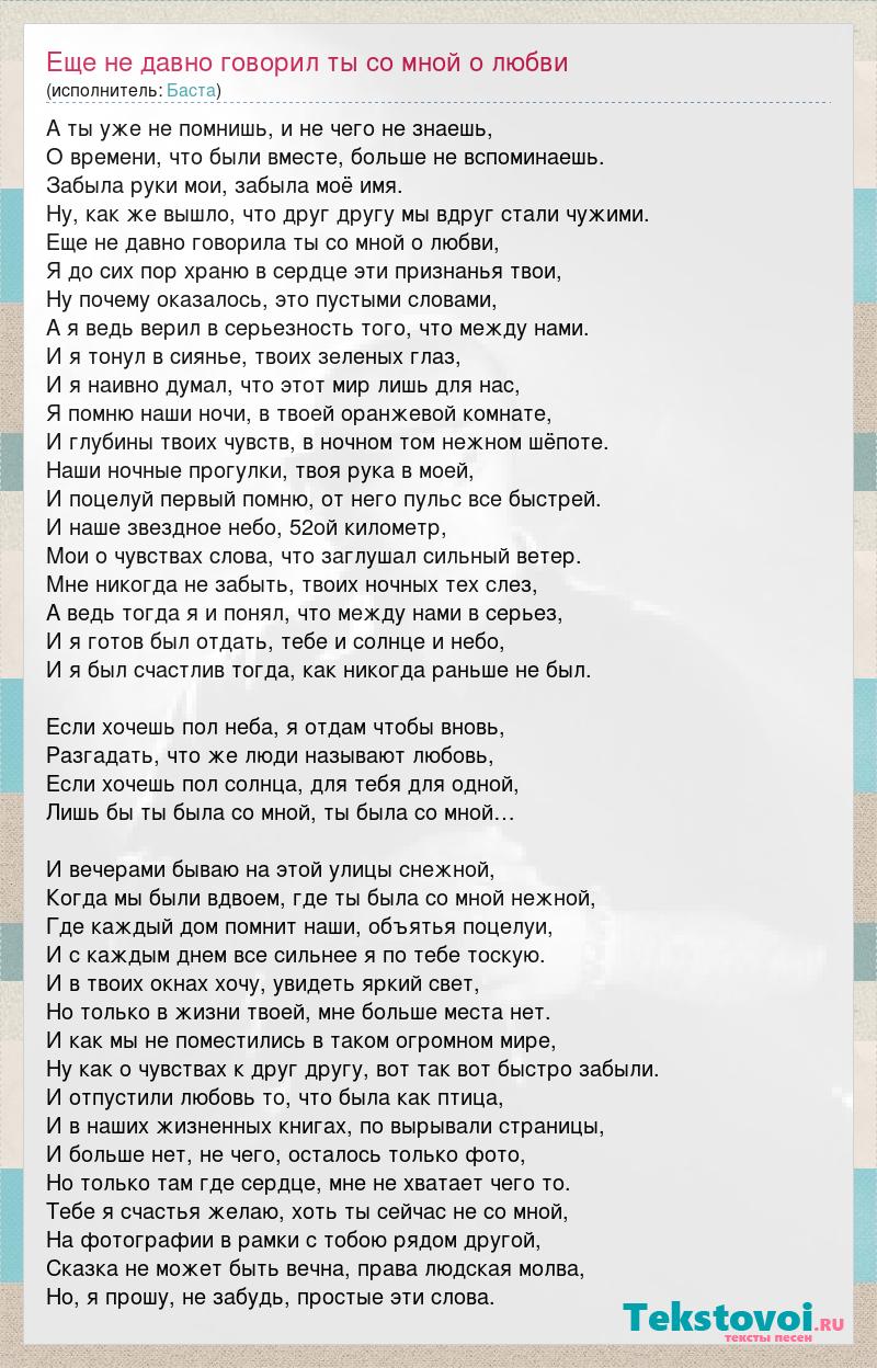 А как ты думаешь, о чем песня "Еще не давно говорил ты со мной о любви" ?