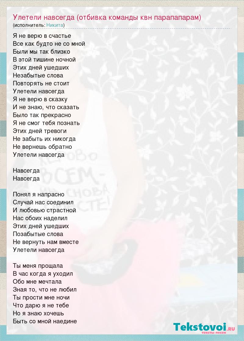 А как ты думаешь, о чем песня "Улетели навсегда (отбивка команды квн парапапарам)" ?