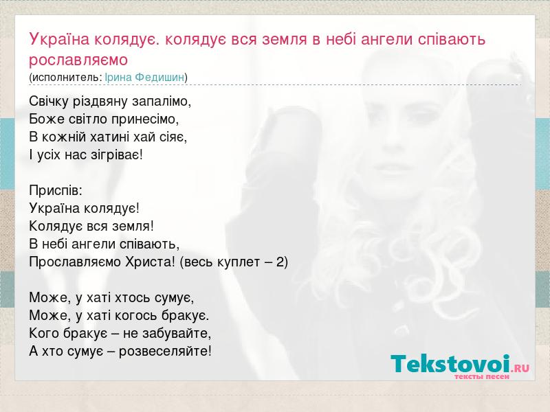 Главная→Исполнители→Ірина Федишин→Україна колядує. колядує вся земля в небі ангели співають рославляємо