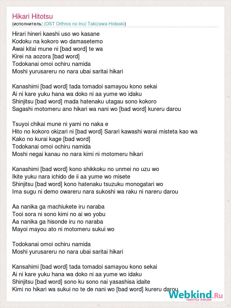 А как ты думаешь, о чем песня "Hikari Hitotsu" ?