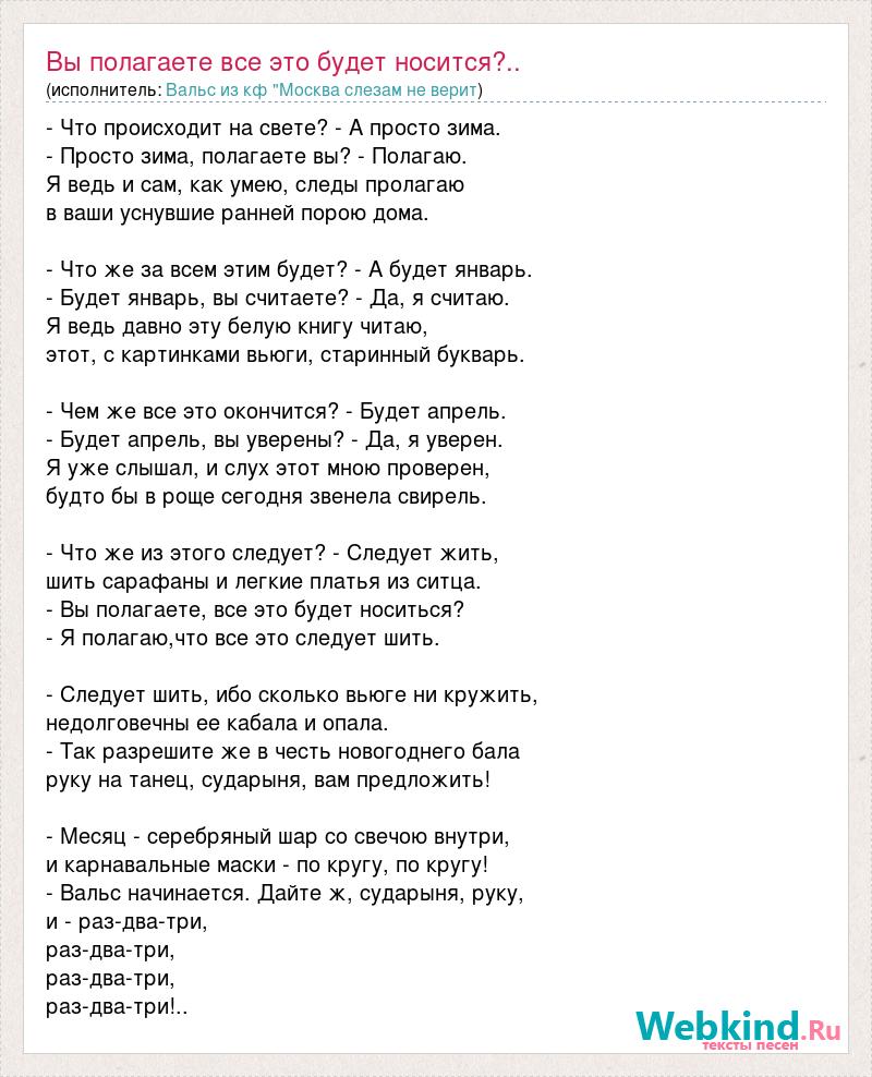 А как ты думаешь, о чем песня "Вы полагаете все это будет носится?.." ?